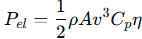 [P_{turbina} = \frac{1}{2} \rho A v^3 C_p]